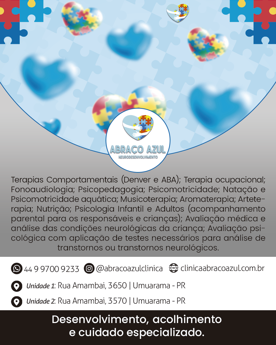 A Clínica Abraço Azul conta com diversas especialidades terapêuticas,