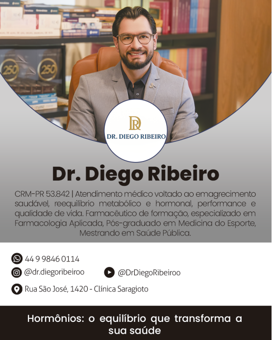 Sou o Dr. Diego Ribeiro, médico especializado em emagrecimento saudável e terapias de reequilíbrio metabólico-hormonal. Com abordagem científica e precisão clínica, ajudo meus pacientes a alcançarem resultados sustentáveis e mensuráveis, sem extremos. Meu propósito vai além da balança: o foco é transformar sua saúde por meio de prevenção, educação e acompanhamento consistente. Cuidar do corpo é também cuidar da mente.