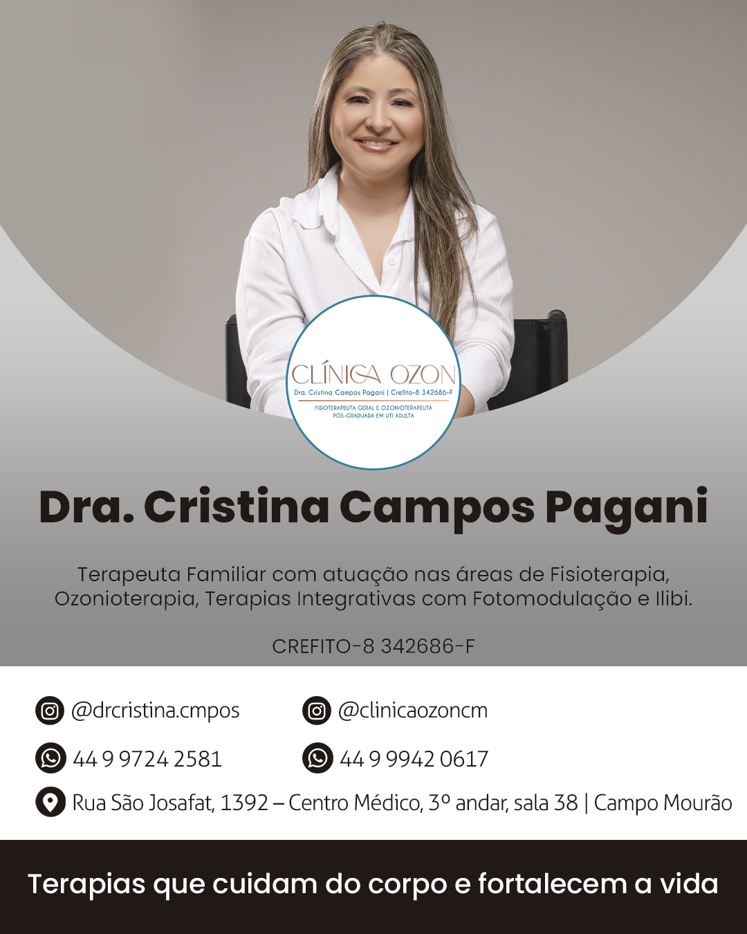 Familiar com atuação nas áreas de Fisioterapia, Ozonioterapia, Terapias