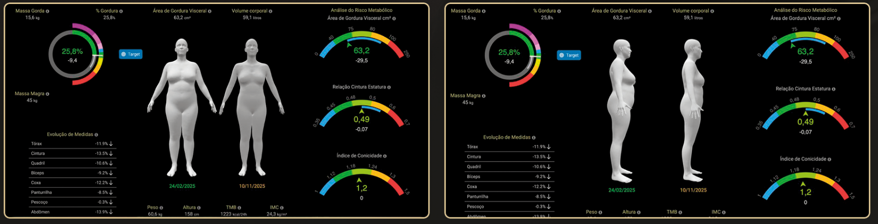 O Mounjaro (tirzepatida), antes usado para diabetes, tornou-se um atalho popular para emagrecer. Embora prometa perda de peso acelerada e menor fome, cresce a preocupação científica com seus efeitos silenciosos no corpo, especialmente quando usado sem acompanhamento médico. O principal problema é que, nem todo peso perdido é gordura. Vejamos o exemplo, abaixo, do resultado de uma avaliação por bioimpedância, realizada com acompanhamento médico especializado, evidenciando aumento significativo de massa magra, redução expressiva de gordura visceral, diminuição do risco vascular e queda consistente da gordura corporal:
