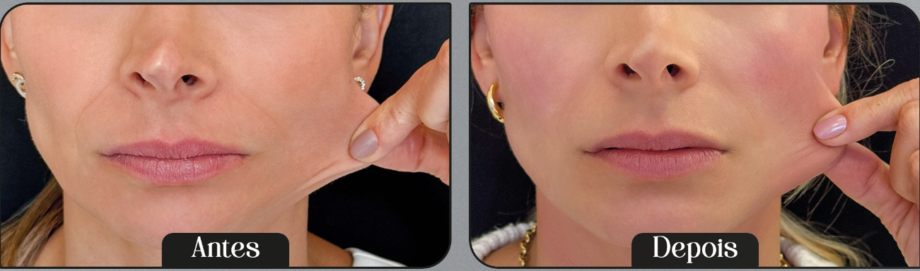Na imagem, apresentamos o antes e depois de uma paciente muito querida, que evidencia a melhora progressiva da qualidade da pele após o procedimento, com resultados naturais e elegantes.